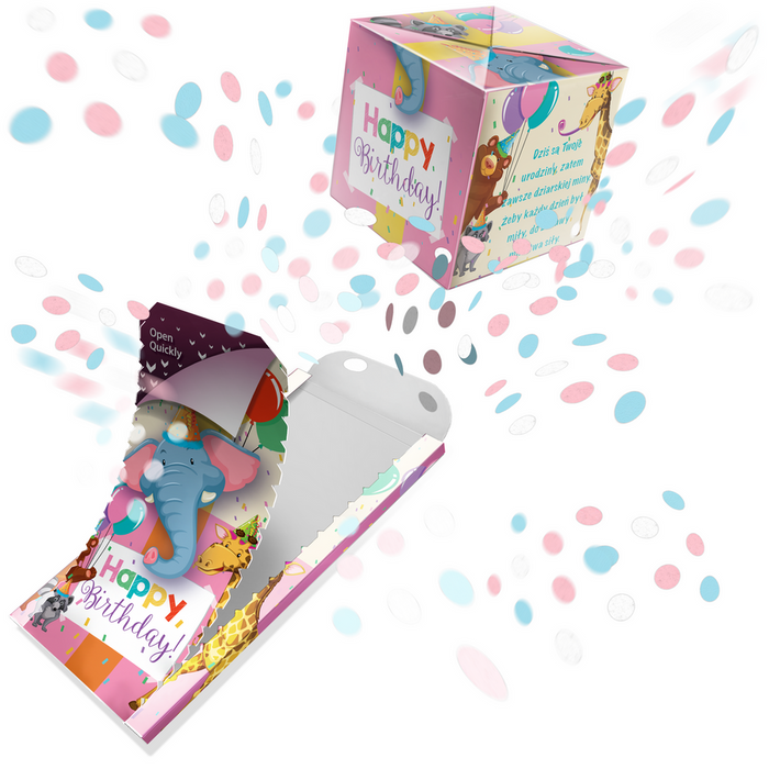 Kartka urodzinowa wybuchająca konfetti - Happy Birthday słonik