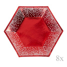 Talerzyki papierowe Czerwony w białe kropki sześciokąt rozm. M 8 szt