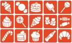 Szablony do tatuaży brokatowych ZESTAW 15 szt. mix Słodycze