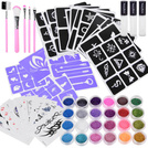 ZESTAW do tatuaży brokatowych (szablony, klej, odtłuszczacz, pędzelki)