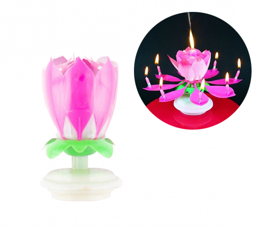 Po  podpaleniu kwiatu wystrzeliwuje fontanna tortowa a  świeczki na liściach się podpalają. Kwiat rozwija się  i obraca w trakcie czego trwa melodia sto lat.