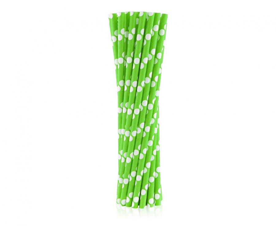 Super słomki w kolorze zielonym zdobione białymi grochami.
