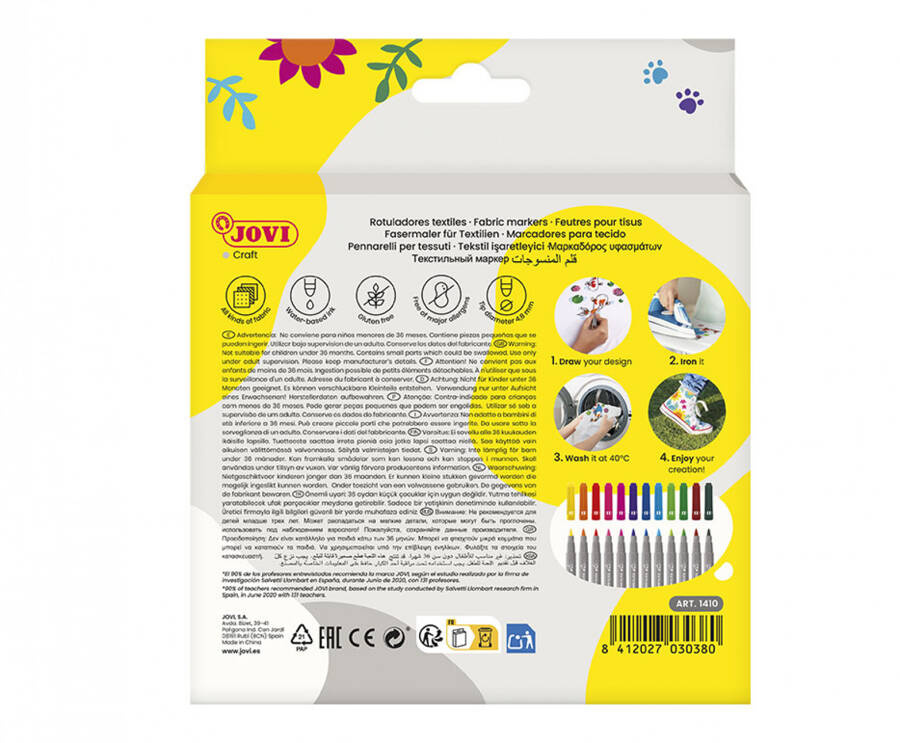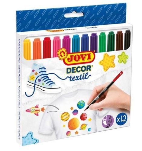 - Flamastry dekoracyjne do tkanin JOVI. Można nimi zdobić koszulki, czapki czy trampki. Końcówka jest bardzo mocna i odporna o grubości 4,8 mm.