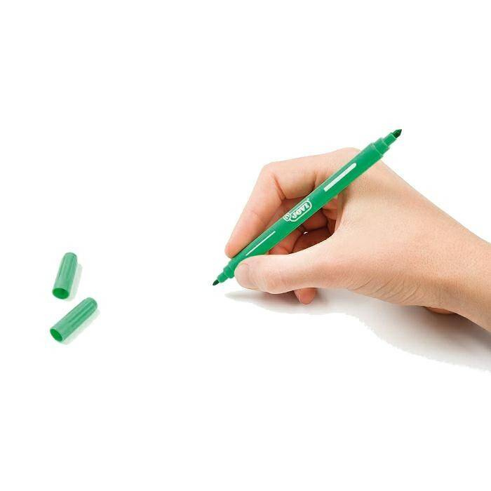 - Zestaw zawiera 12 intensywnych kolorów, a korzystać z niego mogą dzieci już od 4 roku życia. Odporne na szybkie wysychanie, wytrzymują bez skuwki do 96h. Flamastry są dwustronne, na końcach mazaka znajdują się dwie końcówki- cienka i grubsza.
