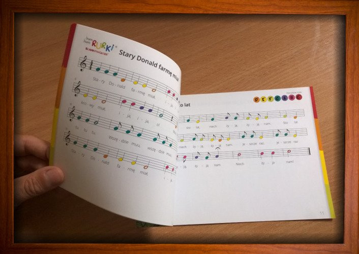 Piosenki są zapisane kolorowymi nutami w standardzie CHROMA-NOTES czyli zgodnie z kolorystyką Twoich Bum Bum Rurek.