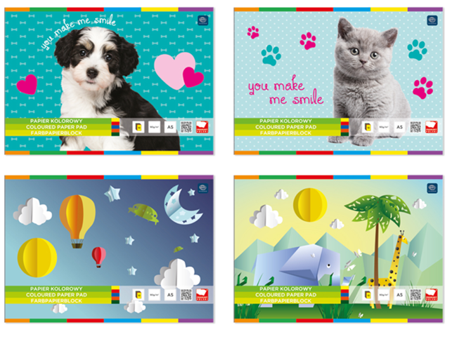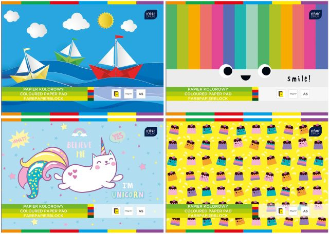 - Zeszyt papierów kolorowych formatu A5. 150 g sklejone na podkładzie z tektury. Kolorowe okładki z kredy, przyciągające uwagę dzieci. Cena za sztukę.