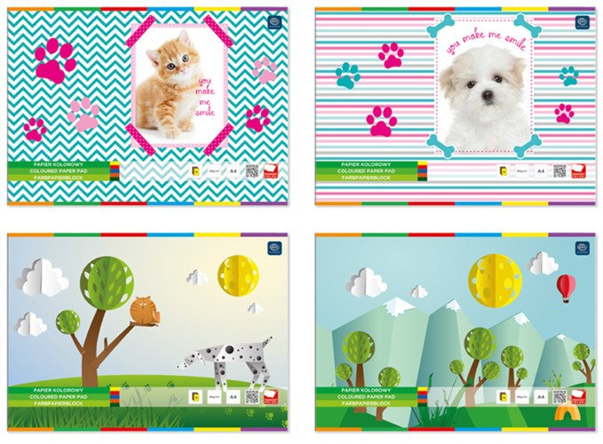 - Zeszyt papierów kolorowych formatu A4. 150 g sklejone na podkładzie z tektury. Kolorowe okładki z kredy, przyciągające uwagę dzieci. Cena za sztukę.