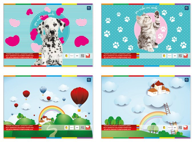 • Zeszyt papierów kolorowych samoprzylepnych B4. sklejone na podkładzie z tektury. Kolorowe okładki przyciągające uwagę dzieci. Cena za sztukę. Zeszyt: 8 kartek