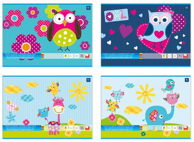 - Zeszyt papierów kolorowych samoprzylepnych B4 FLUO. sklejone na podkładzie z tektury. Kolorowe okładki przyciągające uwagę dzieci. Cena za sztukę. Zeszyt: 8 kartek
