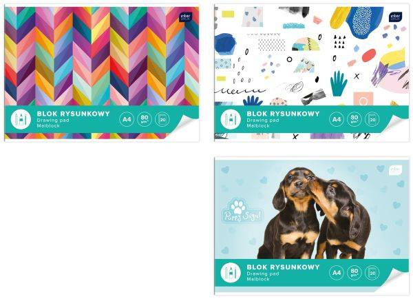 • Blok rysunkowy biały A4 . Kolorowe okładki przyciągające uwagę dzieci. Cena za sztukę. Zeszyt: 20 kartek