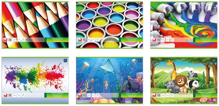 Produkt idealny do wszelkich prac kreatywnych. Kolorowe okładki przyciągające uwagę dzieci.