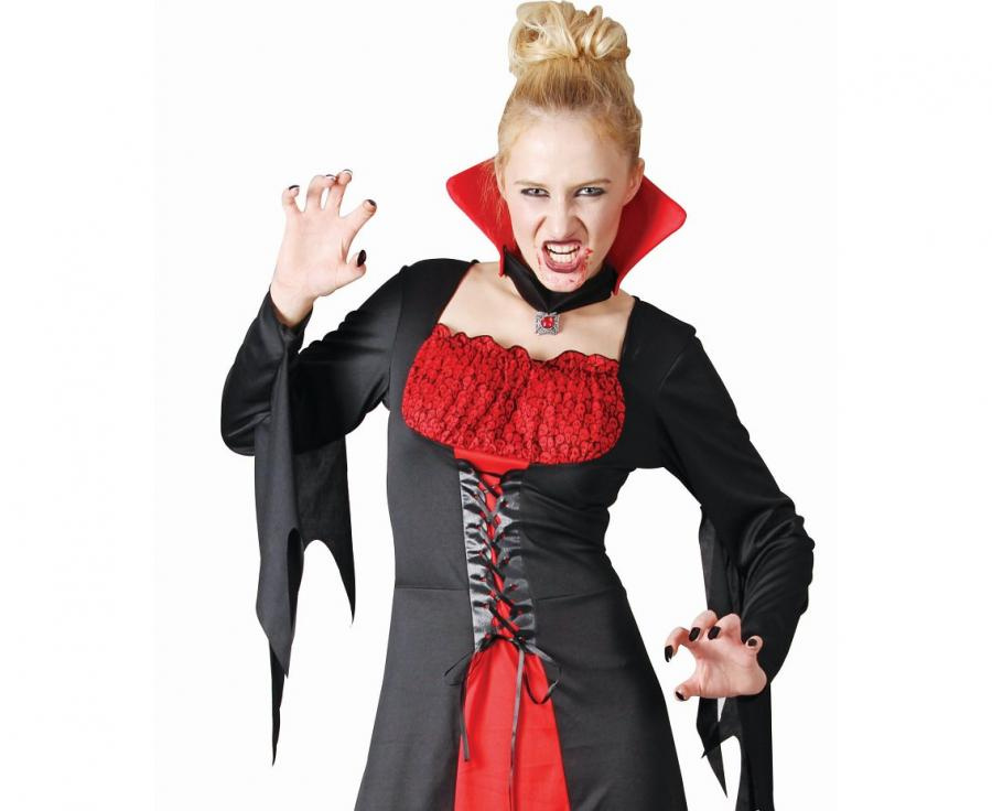 Wampirzyca czerwono czarna sukienka i kołnierz