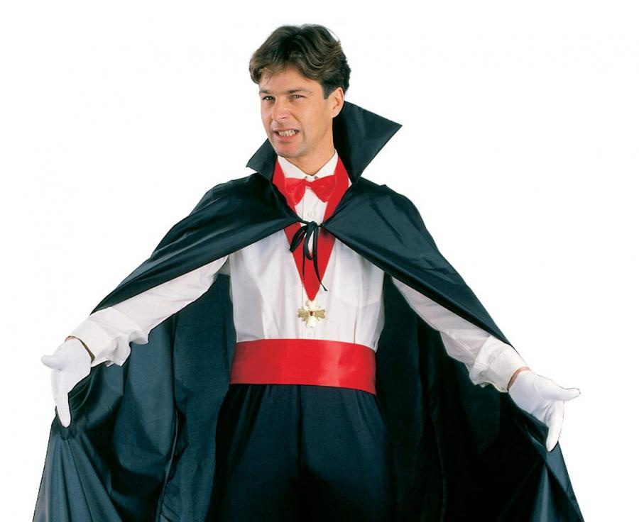 Czarna peleryna wampira z usztywnionym kołnierzem.