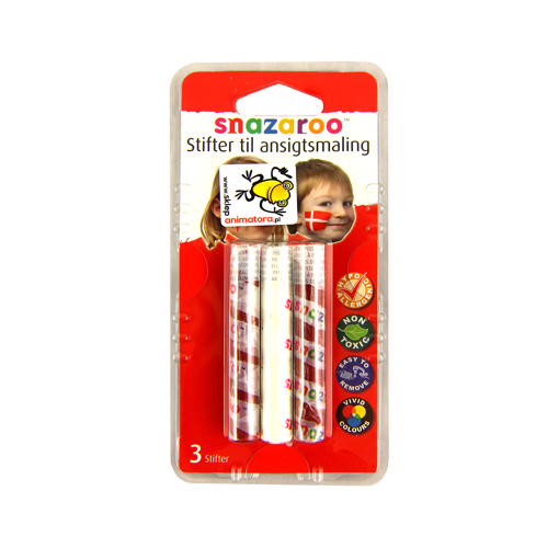 Kredki do twarzy i ciała zestaw KIBIC biało-czerwony Snazaroo 3 szt.