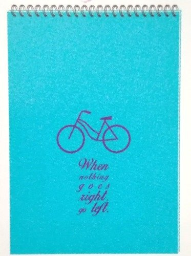 Otwory do segregatora. Perforacja wzdłuż grzbietu, ułatwiająca wyrywanie kartek. Spirala po krótkim boku.