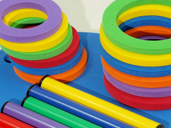 Podstawa stojaka i pierścienie wykonane z pianki EVA. Tyczki wykonane z PVC.