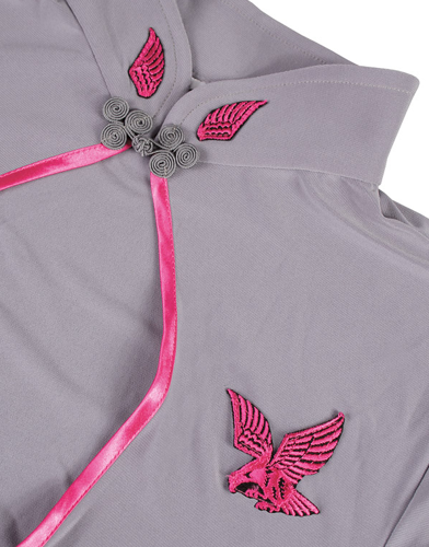 Zestaw składa się z: Szara tunika /mini sukienka z różowymi ozdobami naszywkami w kształcie orła, czapeczka.