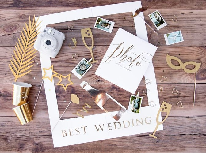 Gadżety do zdjęć Let's Celebrate w kolorze złotym, mix wzorów.