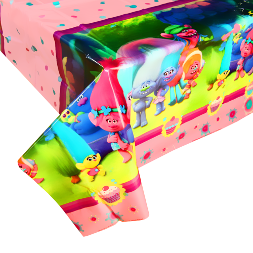 - Kolorowy Obrus plastikowy Trolls 120 x 180 cm niezwykle praktyczny podczas organizacji przyjęć, imprez, urodzin. Cena za sztukę.