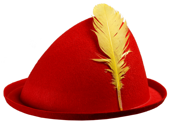 Kapelusz czerwony z żołtym piórkiem Pinokio
