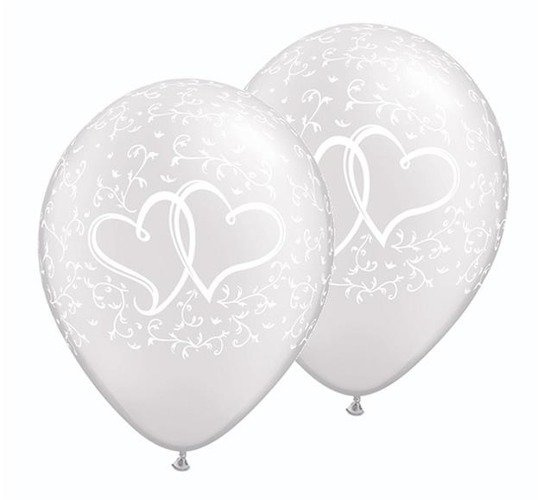 QL11 cali 25 szt okrągłe z nadrukiem 2 BIAŁYCH SERC i PNĄCZ balon perłowy metalizowany