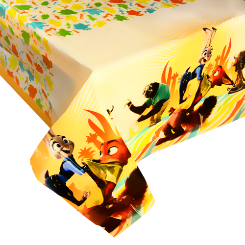 Kolorowy obrus zdobiony jest postaciami z bajki Zootropolis.