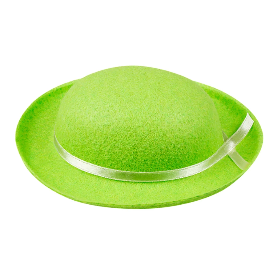 - Mały, gładki wykonany z filcu, przewiązany błyszczącą wstążką. Melonik mocowany jest za pomocą gumki.