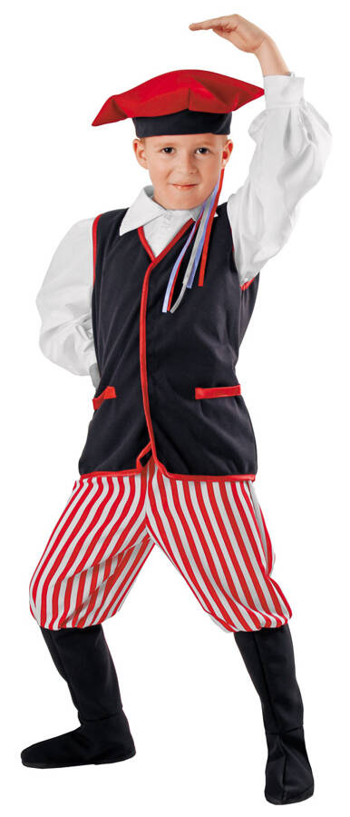 - Strój dziecięcy KRAKOWIAK doskonały jako charakteryzacja w przedstawieniach szkolnych i teatralnych. Idealne uzupełnienie garderoby do jasełek i strojów ludowych. Kostium dla wygodny i elastyczny. Zestaw zawiera: bluza, kamizelka, spodnie, czapka.