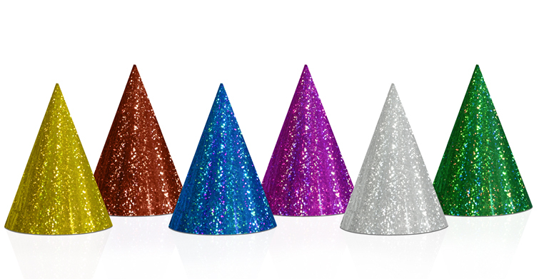 - Papierowa czapeczka w kształcie stożka, mocowana na elastycznej gumce. Czapeczkę zdobią holograficzne kropeczki. Cena za sztukę.