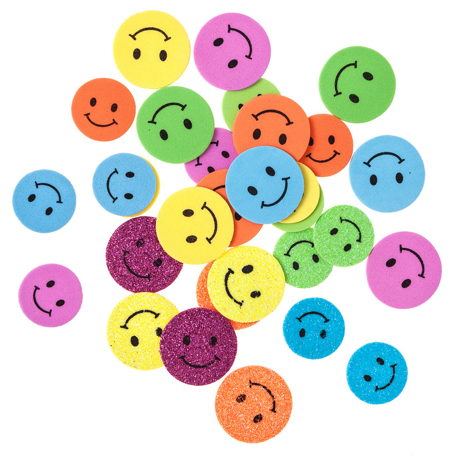 Naklejki z pianki z brokatem UŚMIECHY 30 szt