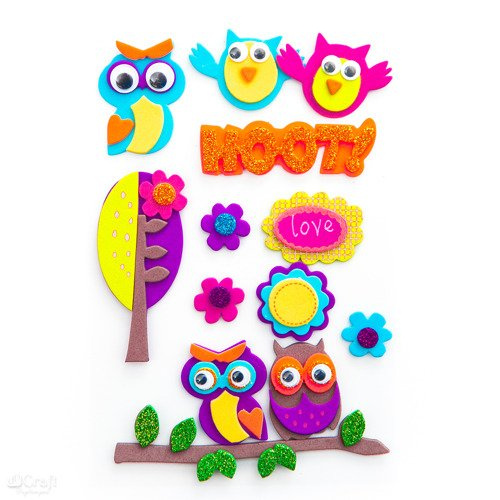 Naklejki z pianki z brokatem ŚWIAT SÓW 13 szt