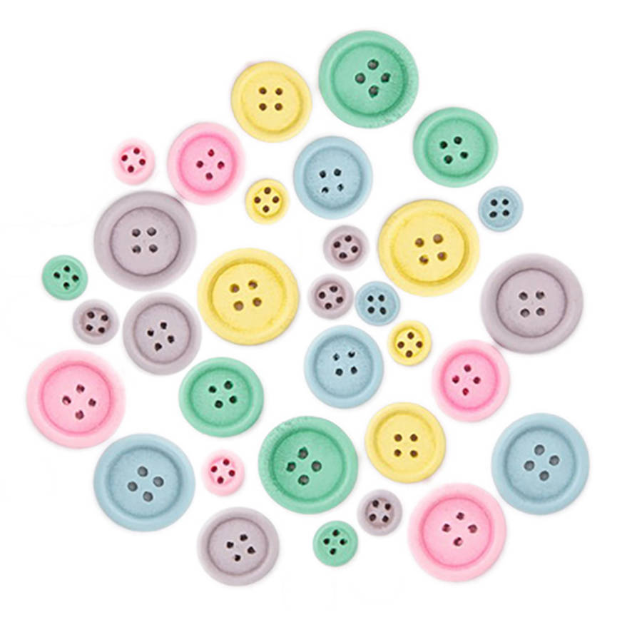 Guziki drewniane MIX 30 szt PASTELOWE
