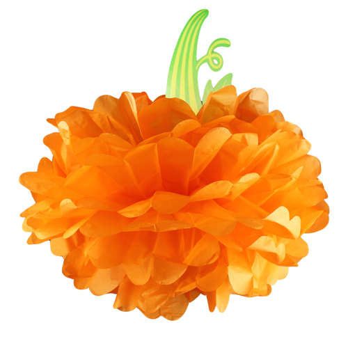 - Pompon dekoracyjny i wykonany z papieru. Wymiary: dynia 40,5 cm, ogonek 15 cm.