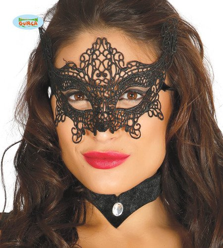 • Maska koronkowa Haftowana CZARNA. Niezastąpiona na balu karnawałowym, przedstawieniach szkolnych czy imprezach tematycznych.