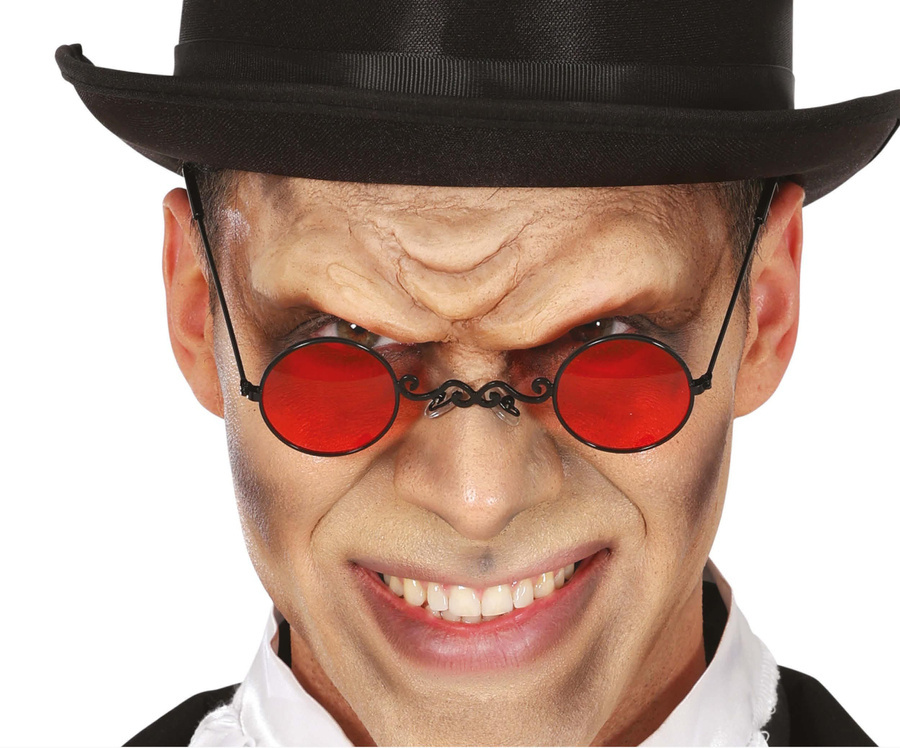 Czerwone szkła zapewniają tajemniczy, a jednocześnie wyrazisty wygląd, podkreślając wampirzy styl. Z tymi okularami każdy może poczuć się jak wampirzy arystokrata!