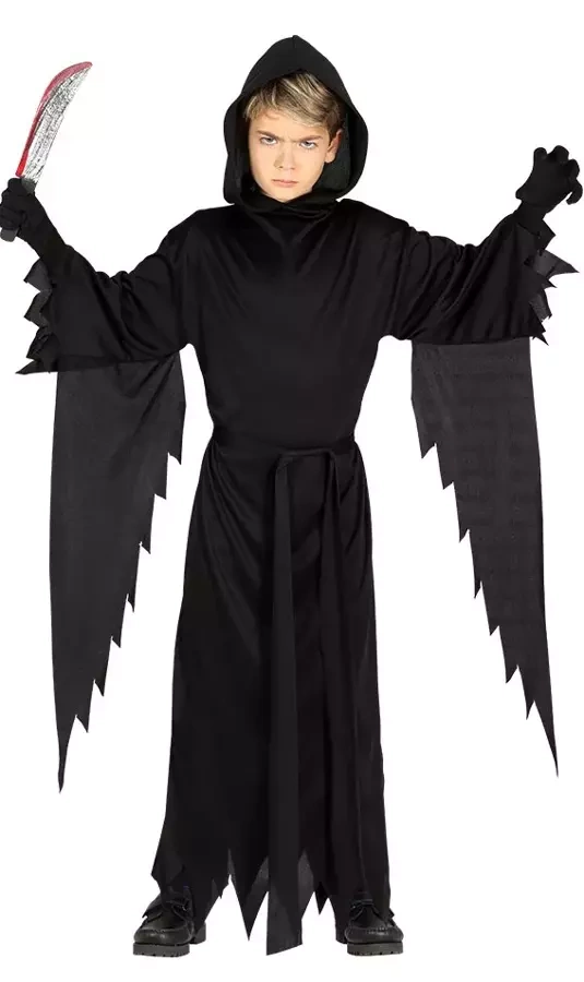 Czarna szata wojownika z kapturem wykonana jest z gładkiego, elastycznego materiału.