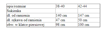 Podane poniżej wymiary kostiumu, są to wymiary rzeczywiste stroju, mierzonego na płasko (bez rozciągania materiału).