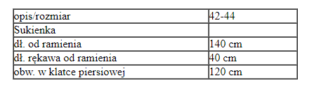 Podane poniżej wymiary kostiumu, są to wymiary rzeczywiste stroju, mierzonego na płasko (bez rozciągania materiału).
