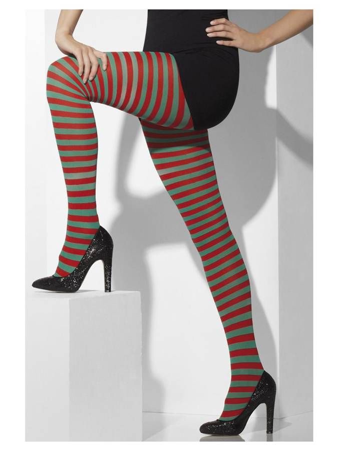 Rajstopy elfa w paski czerwono - zielone