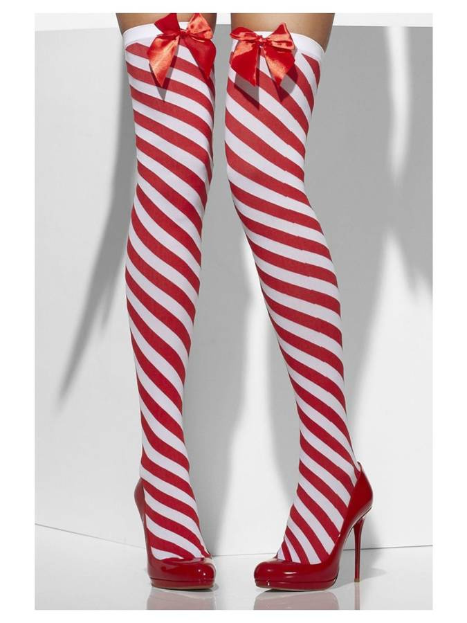 Zakolanówki Pończochy w skośne paski biało czerwone