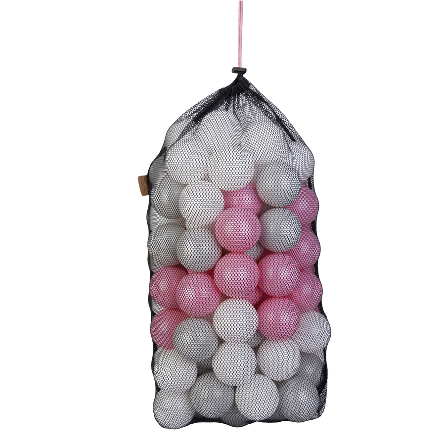 Piłeczki zapakowane w praktyczny worek z siateczki zamykany za pomocą sznurka ze ściągaczem.
