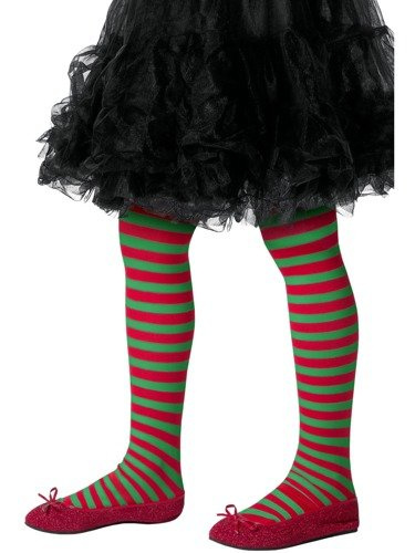 Rajstopy ELFA dziecięce PASKI zielono - czerwone