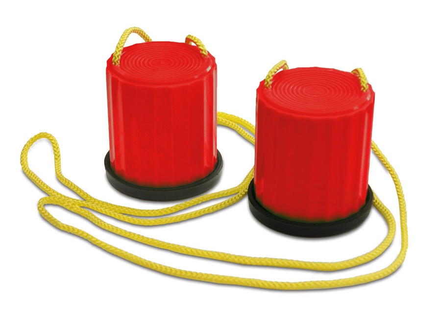 Regulowane sznurko-uchwyty sprawiają, że szczudła można dostosować do wzrostu dziecka.