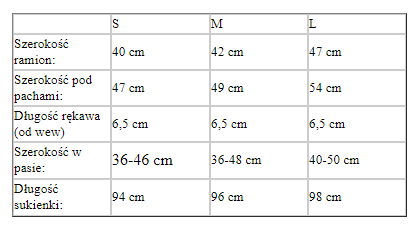 | Długość sukienki: | 94 cm | 96 cm | 98 cm |