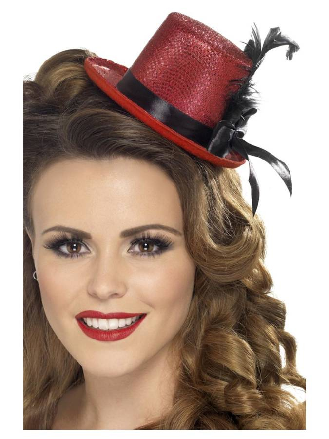 Mały, gładki melonik w formie miniaturowego cylindra, wykonany z usztywnionego błyszczącego materiału. Ozdobiony delikatnymi piórkami, które nadają mu unikalnego i wyrafinowanego charakteru.