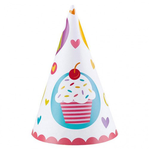• Zestaw czapeczek papierowych 6 sztuk. Barwne papierowe czapeczki w kształcie stożka w babeczki.