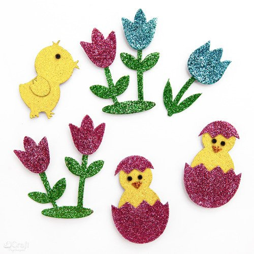 Naklejki pianki z brokatem KURCZACZKI 6 szt