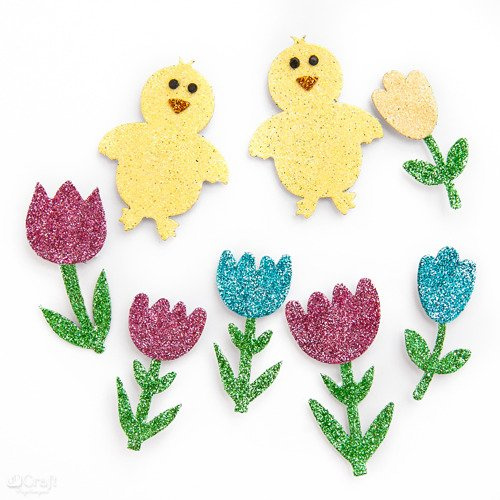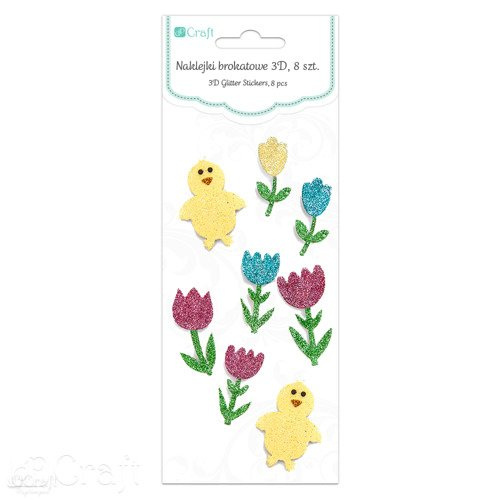Naklejki z pianki z brokatem KURCZACZKI I TULIPANY 8 szt