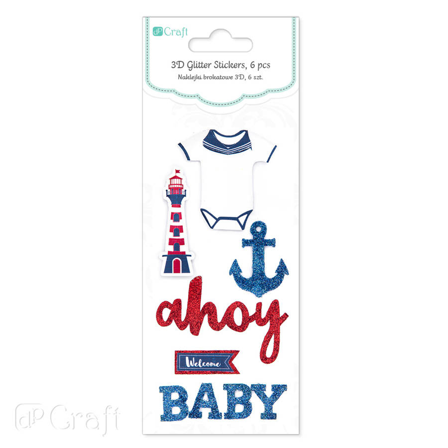 Naklejki brokatowe 3D Ahoy Baby 6 szt