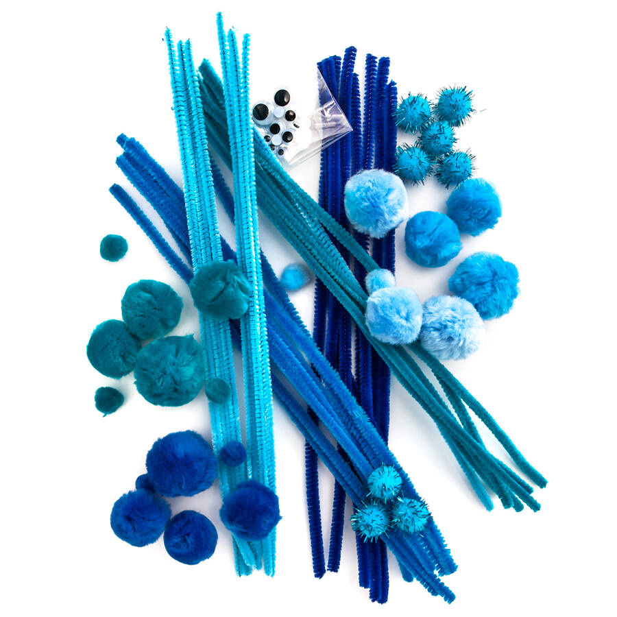 - pompony w różnych rozmiarach i kolorach